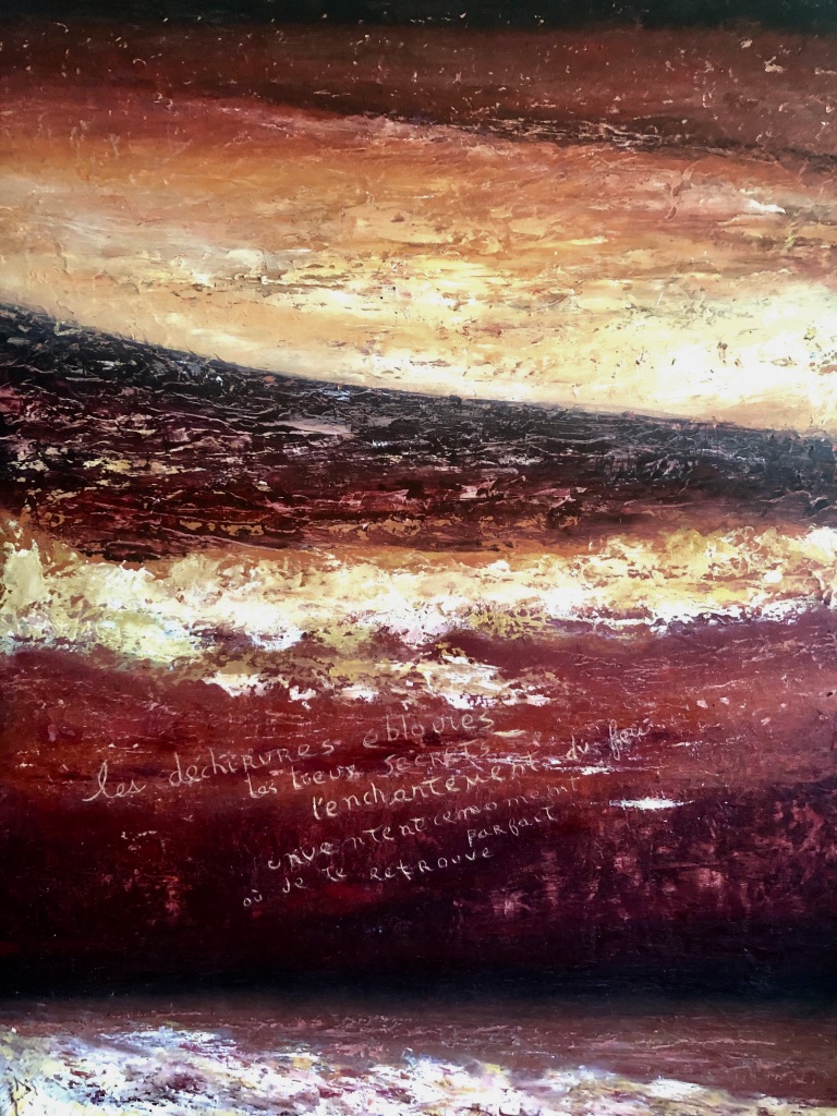 J’avance dans ces espaces qui s’ouvrent et se recommencent, là où les déchirures éblouies, les lieux secrets, l’emmêlement des formes et des mémoires,