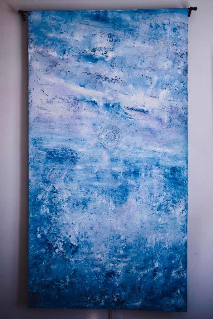 Fleuve-ciel, 2022, huile sur mylar, 74 »x39.5 » – 187.96×100.33 cm